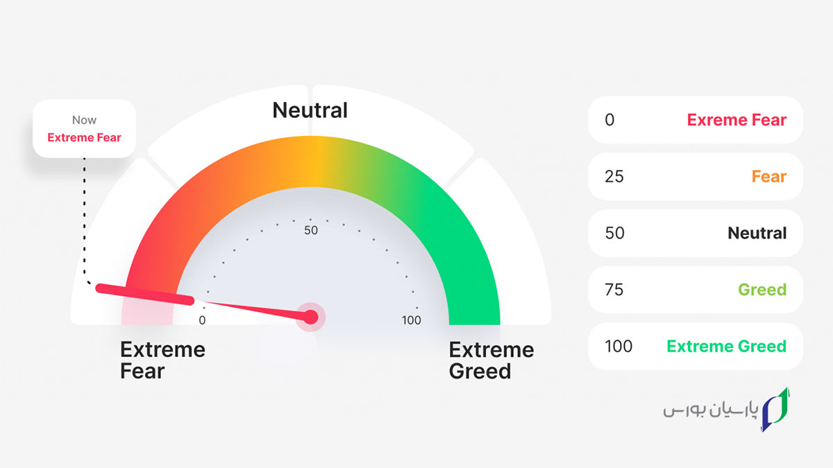 - احساسات بازار را از ۰ (ترس شدید) تا ۱۰۰ (طمع شدید) نشان میدهد